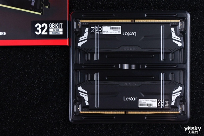 雷克沙 32GB DDR4 3600系列的内存涵盖了家族设计的黑色散热背心,分为RGB版的战神之刃和非RGB版的战神之盔甲。这次我们评估了后者。