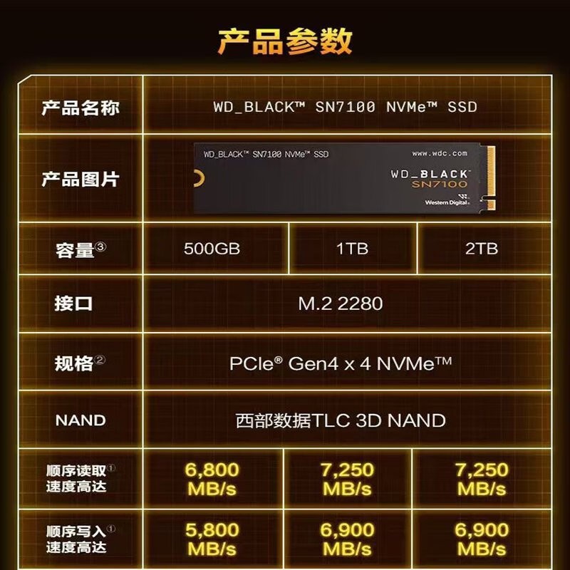 西部数据 SN7100 1T 2T 黑盘 M.2 nvme pcie 4.0 SSD固态硬盘 西数SN7100系列 2TB