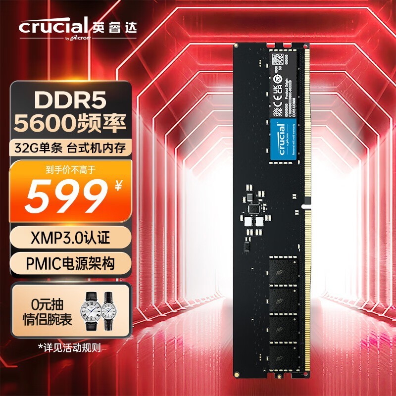 英睿达 32GB DDR5 5600频率 台式机内存条 美光原厂颗粒 AI电脑配件
