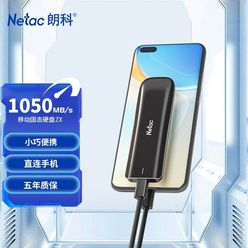朗科 ZX 500GB Nvme协议移动固态硬盘(PSSD)Type-c USB3.2 PCIE接口手机直连读速1050MB/s