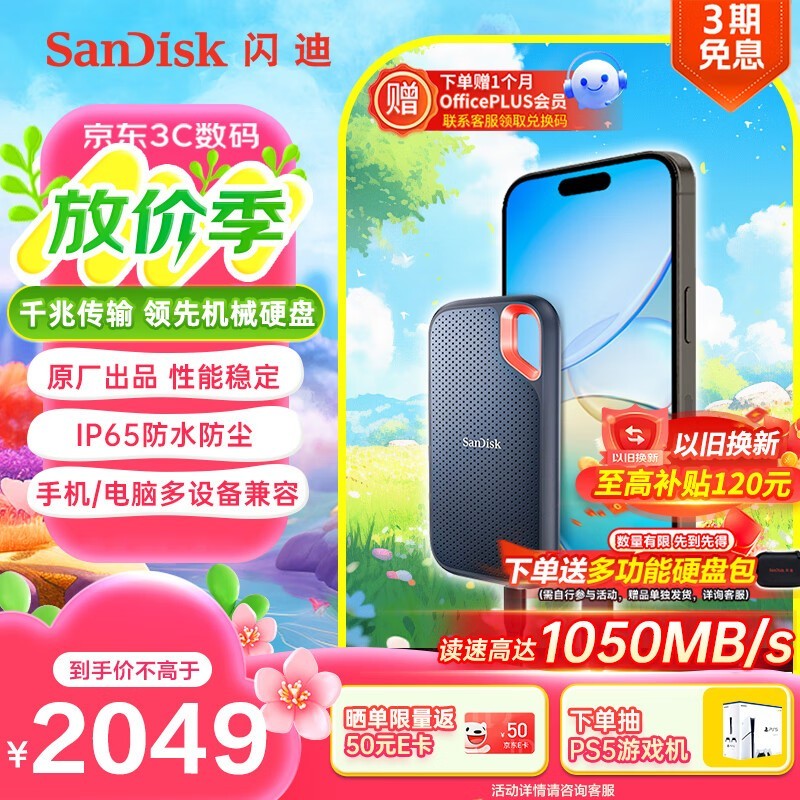 闪迪 E61 Type - C接口固态硬盘4TB正在京东促销。其原价2049元,参加满300减50元活动后,折后每件仅需1999元。