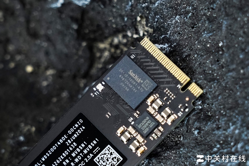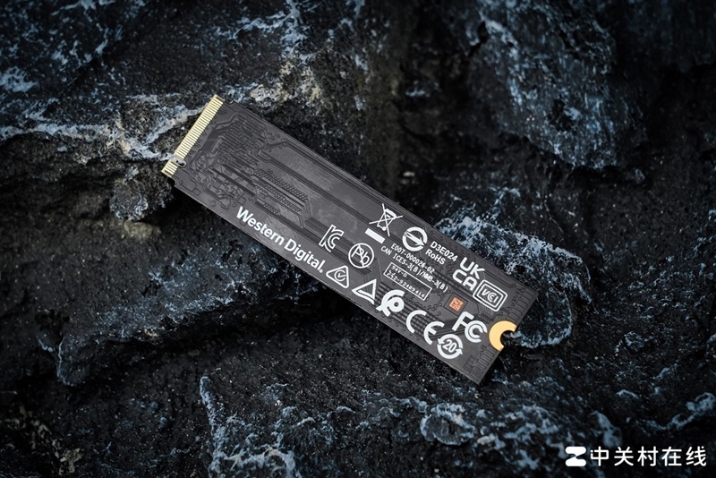 西部数据 SN50002TB采用单面芯片设计,PCB背面没有任何元器件,降低发热量的同时也有很好的兼容性,非常适合笔记本电脑等空间狭小的设备扩容使用。PCB背面还丝印了一些相关的认证标识,依然是熟悉的西部数据气息。