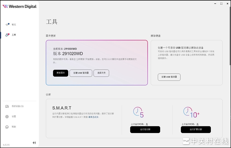 在“工具”中可以对固态硬盘进行固件升级、安全擦除、S.M.A.R.T诊断,非常实用,让你的固态硬盘不再成为“孤儿”。