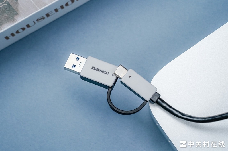 数据线插头采用二合一设计,一端是USB-C,另一端是可组合的USB-C/A,一插拔即可轻松转换,无论是主流的PC、智能手机和平板电脑以及老电脑都能用,免去携带两条数据线的烦恼,转接头是固定在线材上的还能避免丢失。