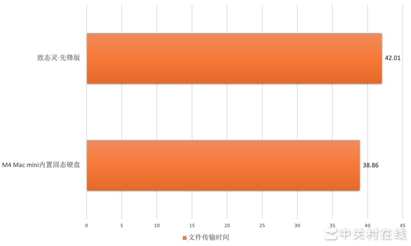 先别焦虑,毕竟跑分成绩不能代表全部,接下来看看文件传输实测。我们在内置的固态硬盘中划分出一个独立的分区,然后将桌面上的191个共30.5GB的视频素材文件,分别拷贝到内置固态硬盘的另一个分区和致态灵・先锋版2TB,用时分别为38.86秒和42.01秒,差距显然没有跑分这样明显。