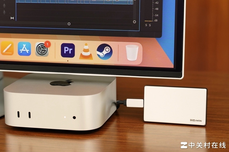 普通用户如何实现安全、便捷的扩容?别忘了M4 Mac mini配备五个Type-C接口,两个USB3.2Gen2和三个雷雳4。虽然雷雳4移动固态硬盘速度堪比内置,但是价格劝退,较大的发热量也不适合长期联机。因此外置移动固态硬盘可能就是最理想的选择,例如致态灵・先锋版移动固态硬盘千元出头就能买到2TB,今天我们就以它为例,给大家检验一下这种扩容方式是否靠谱。