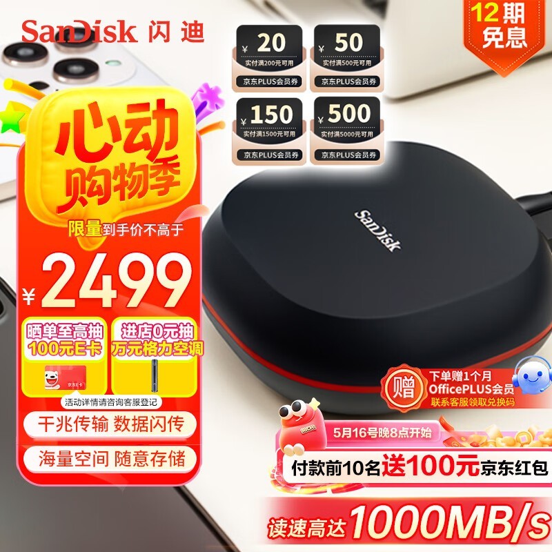 闪迪 T40 4TB Type-c USB 3.2 桌面固态硬盘备份小魔方 读速高达1000MB/s 大容量 安全稳定