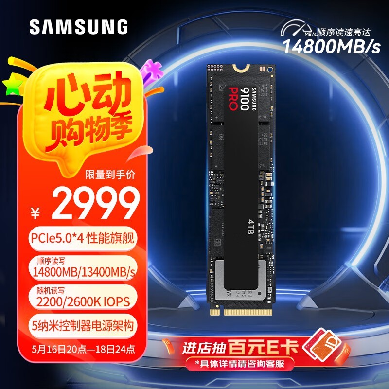 三星 9100 Pro固态硬盘在京东的活动售价为2999元,当你下单1件时,可以叠加Plus补贴满1500-150元,并且Plus会员还能立减14.99元,这样算下来,实际支付低至2834.01元。如果你正在寻找大容量且高性能的固态硬盘,这款三星 9100 Pro是个不错的选择。