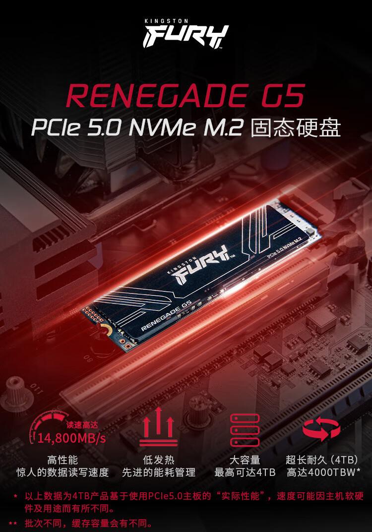 金士顿2TB SSD固态硬盘 M.2接口 FURY Renegade 读速高达14700MB/s AI 电脑配件