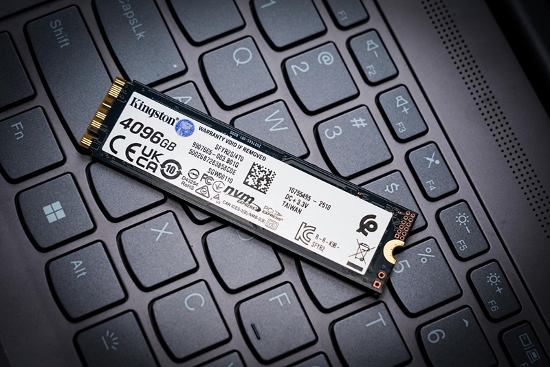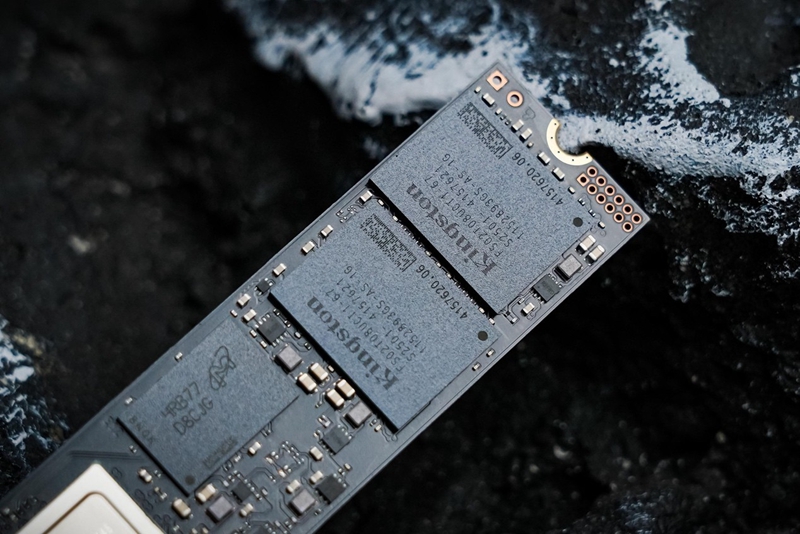 核心元件NAND FLASH芯片为金士顿自封装的铠侠218层BiCS8 TLC,单颗容量2TB,两颗组成4TB标称容量。DRAM独立缓存芯片为美光LPDDR4,从4RB77的编号来看容量为4GB,实现1TB搭配1GB的规格。