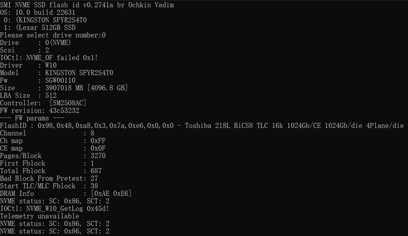 SMI SSD Flash id信息显示
