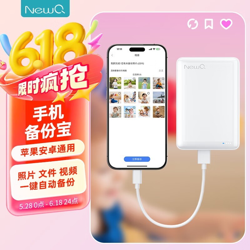 NewQ H3珍珠白移动硬盘1TB专为便捷存储设计,支持USB3.2高速传输接口,轻松实现iPhone手机直连一键备份照片,操作简单高效,亦兼容安卓手机、平板电脑等多种设备,满足日常文件转移与扩容需求,外观精致小巧,携带方便,性能稳定可靠,是您理想的外置存储选择,当前京东活动售价539元,参与满1元打9折优惠,下单1件实付仅需485.1元,限时特惠不容错过。