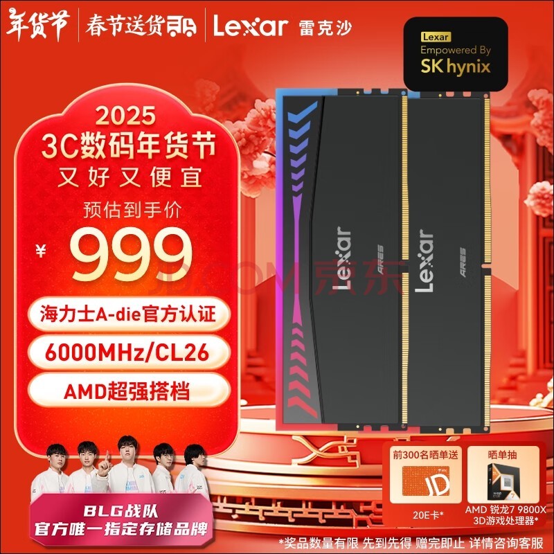 雷克沙DDR5 6000 32GB套条 电竞RGB灯条台式内存条 海力士A-die颗粒 C26 Ares战神之翼 黑色