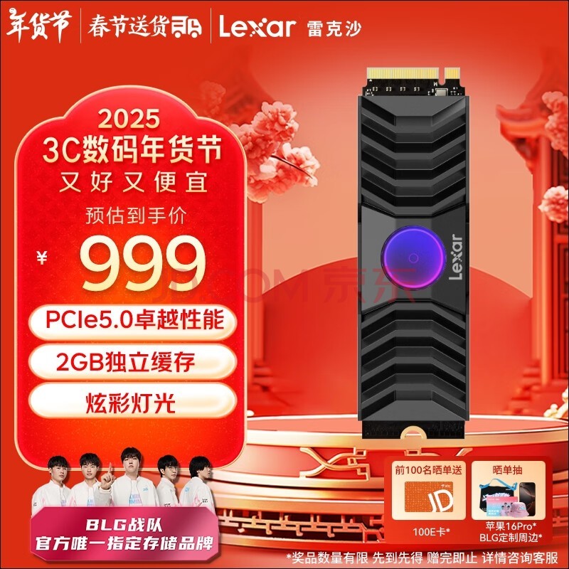 雷克沙NM1090 1TB SSD固态硬盘 M.2接口 PCIe 5.0x4 高速11500MB/s传输 散热马甲套装