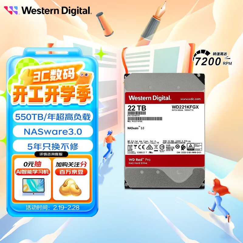 西部数据 WD221KFGX 红盘Pro 22TB,专为NAS和数据中心设计的高性能存储解决方案。西部数据 WD221KFGX 红盘Pro硬盘拥有惊人的22TB超大容量,采用企业级技术,支持高负载运行,稳定性与耐用性兼备,是搭建家庭私有云或专业存储系统的理想选择。目前京东平台正在进行优惠活动,原价5499元的西部数据 WD221KFGX 红盘Pro,现售价仅需5439元,超高性价比不容错过,为您的数据存储提供强大保障!