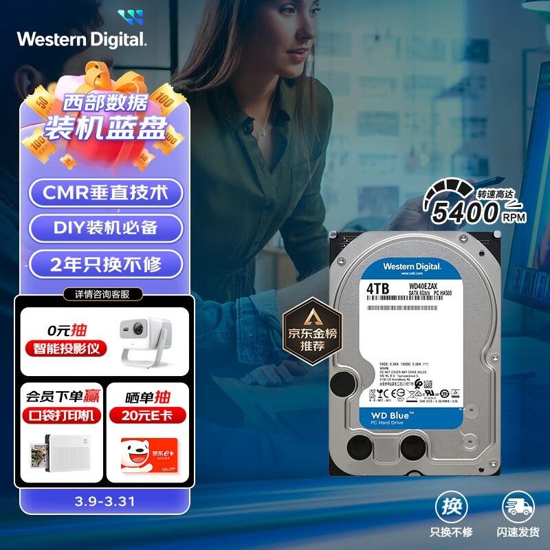 西部数据 蓝盘3.5英寸CMR机械硬盘4TB SATA 3.0正在京东热销。西部数据 蓝盘的接口传输速度能达到215MB/s,还搭载256MB高速缓存,转速为5400RPM,并且采用NoTouch斜坡加载技术,可将记录磁头置于远离磁盘表面的安全位置,有效保护数据。