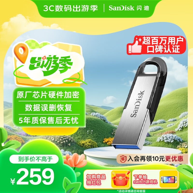 闪迪 CZ73 USB 3.0 U盘,512GB大容量,银色外观精致时尚,兼具高效传输与数据安全功能。闪迪 CZ73 U盘采用USB 3.0技术,读取速度远超标准USB 2.0闪存盘,同时配备闪迪保险箱安全软件,通过密码保护您的机密文件,在分享的同时确保数据无忧。此外,还提供RescuePro文件恢复软件,支持一年内免费使用,轻松应对误删问题。贴心的环孔设计,便于随身携带,随时随地满足您的存储需求。