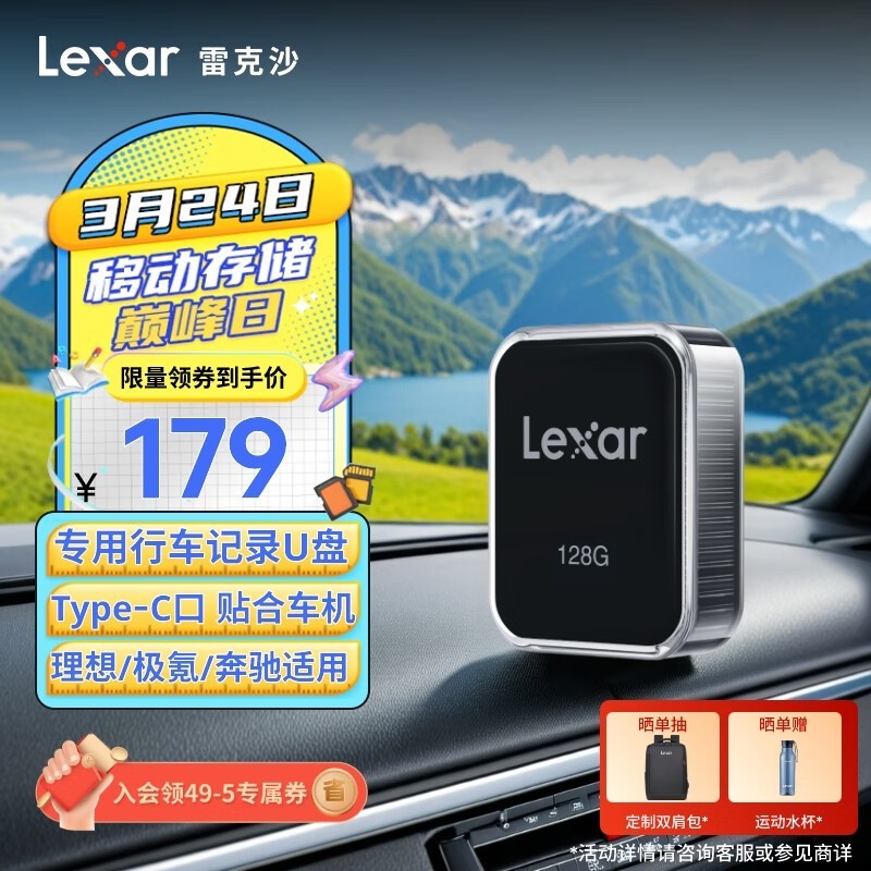雷克沙 C50V 128GB USB3.2 行车记录车载U盘 哨兵模式循环录像 Type-C贴合车机 多款车型适用 奔驰理想U盘