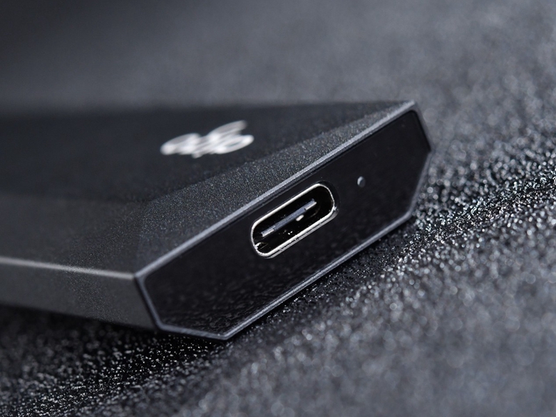 aigo S10左侧配备了Type-C接口,支持USB3.2 Gen2规格,接口带宽10GBps。旁边还有一颗LED,数据读写时候就会闪烁蓝色。