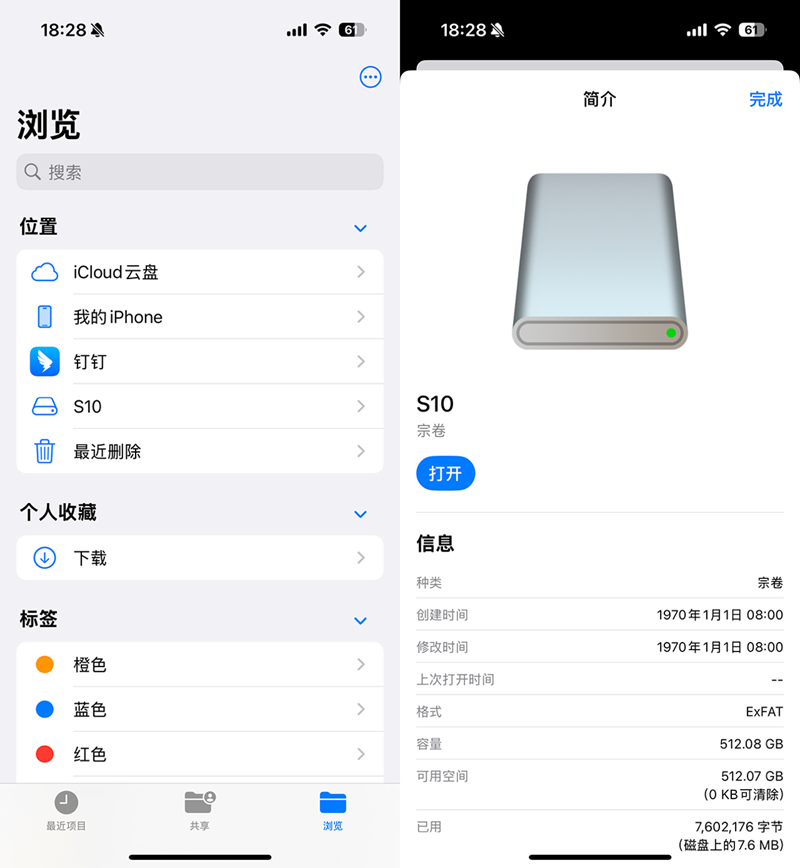 aigo S10最in的应用场景,应该就是搭配智能手机了。很多人抱怨手机的空间多大都不够用,aigoS10有500GB、1TB和2TB三种容量可选,连接智能手机就能被系统文件管理自动识别,例如500GB连接苹果iPhone15 Pro被识别可用容量为512.08GB,扩容只需一瞬间。