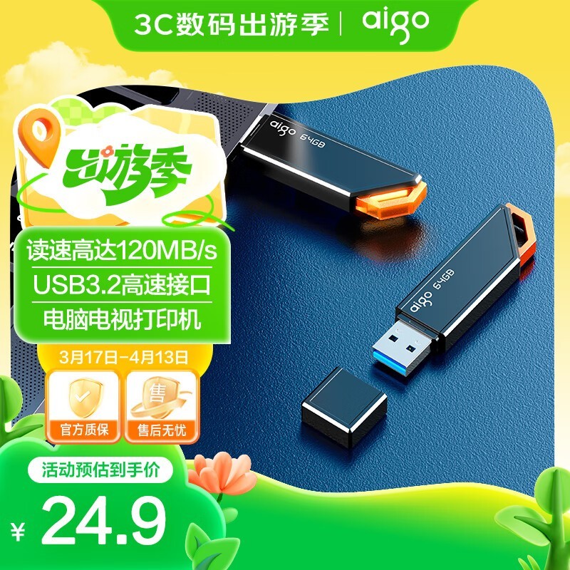 爱国者 U331 64GB USB3.2 U盘 工作指示灯 高速存储u盘 读速120MB/s 电脑扩容商务办公学习优盘