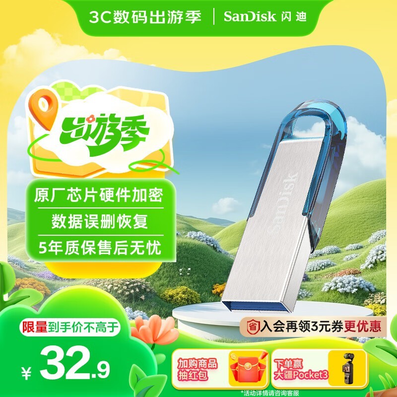 闪迪 CZ73 USB 3.0 U盘(海天蓝64GB)正在促销。闪迪 CZ73原价32.9元,现在下单领取满10减3元优惠券,下单1件,实付低至29.9元。