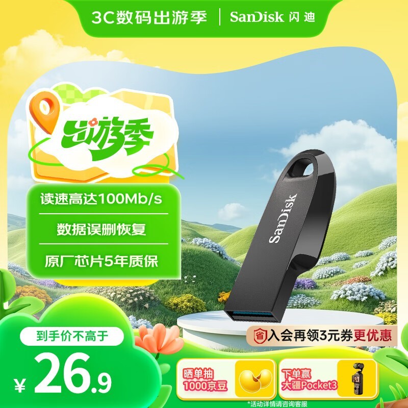 闪迪 CZ550 U盘黑色64GB正在以超低价销售。闪迪 CZ550采用USB 3.2 Gen 1接口,传输速度高达100MB/秒。其内置钥匙扣环设计,便于随身携带,还附带RescuePRO Deluxe数据恢复软件,能轻松恢复意外删除的文件。