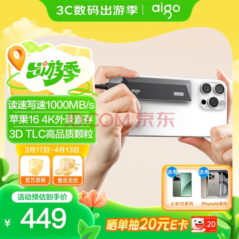 高速免费、无需调休的清明小长假,不冷不热,简直是出游放松的黄金时段!轻装旅行,行李等物品自然是能少一件就少一件,所以出行携带的装备更强调全能,例如aigo移动固态硬盘S10,无论是旅途中休闲解闷,还是记录游玩中的精彩瞬间,都堪称绝佳搭子。