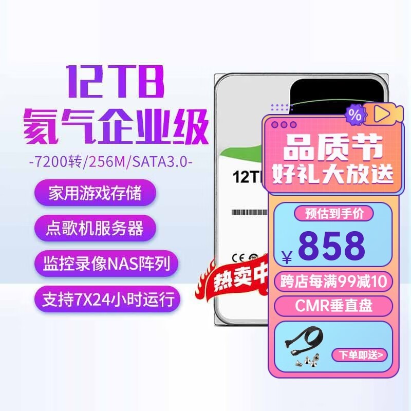 10T 12T 14T 16T 企业级氦气硬盘 NAS阵列机械硬盘 SATA 监控硬盘 12TB