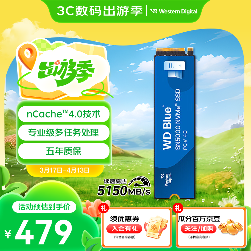 西部数据 SN5000原价为479.00元,现在下单领券可减10元,再叠加满20减10元的优惠券后,到手价仅需469元,有需要的朋友可以入手。