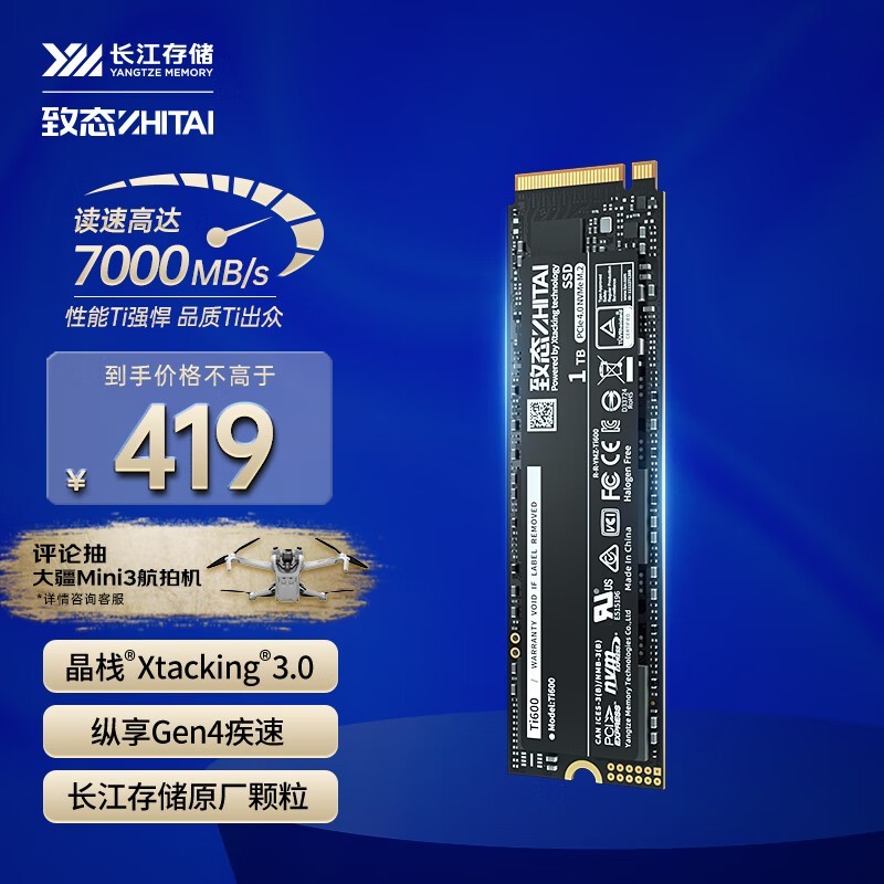 致态 Ti600 长江存储 1TB SSD固态硬盘 NVMe M.2接口 (PCIe 4.0 产品)