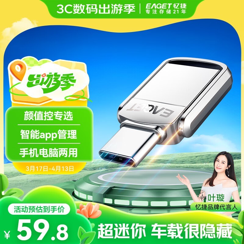 忆捷 CU20 U盘在京东的活动售价很划算,原价59.8元,若下单领取满5.01减5元优惠券,实付低至54.8元。