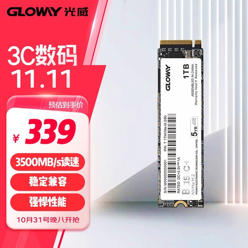 这款光威 Basic+ NVMe M.2固态硬盘是高性能且价格实惠的选择。它采用QLC颗粒,但保修期长达五年,提供了出色的质量和可靠性。顺序读取速度高达2335MB/s,顺序写入速度也达到了1939MB/s。此外,光威 Basic还支持PCIe 3.0x4传输协议,能够有效提升存储速度并缩短系统及软件的启动和读写时间。