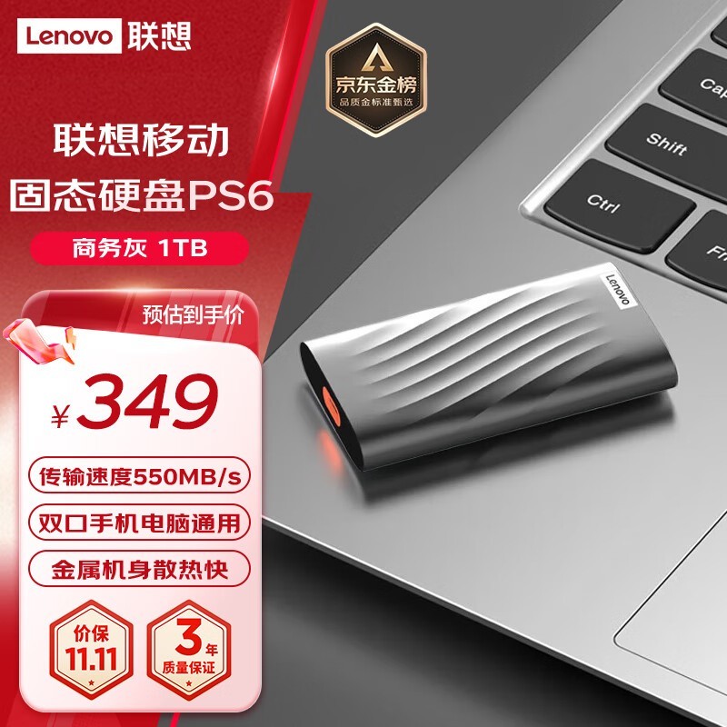 联想 PS6 1TB 移动固态硬盘(PSSD)Type-c USB 3.1 550MB/s高速SSD双接口 手机直连 笔记本