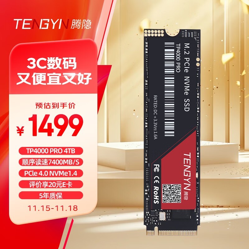 腾隐 TP4000PRO 4TB SSD固态硬盘以其出色的耐用性、大容量以及高性能表现,在众多存储解决方案中脱颖而出。如果你正在寻找一款能够提供极致速度并适应各种环境挑战的SSD产品, 这款绝对是值得考虑的选择之一。现在只需1499元的价格就能拥有如此强大的硬件支持!