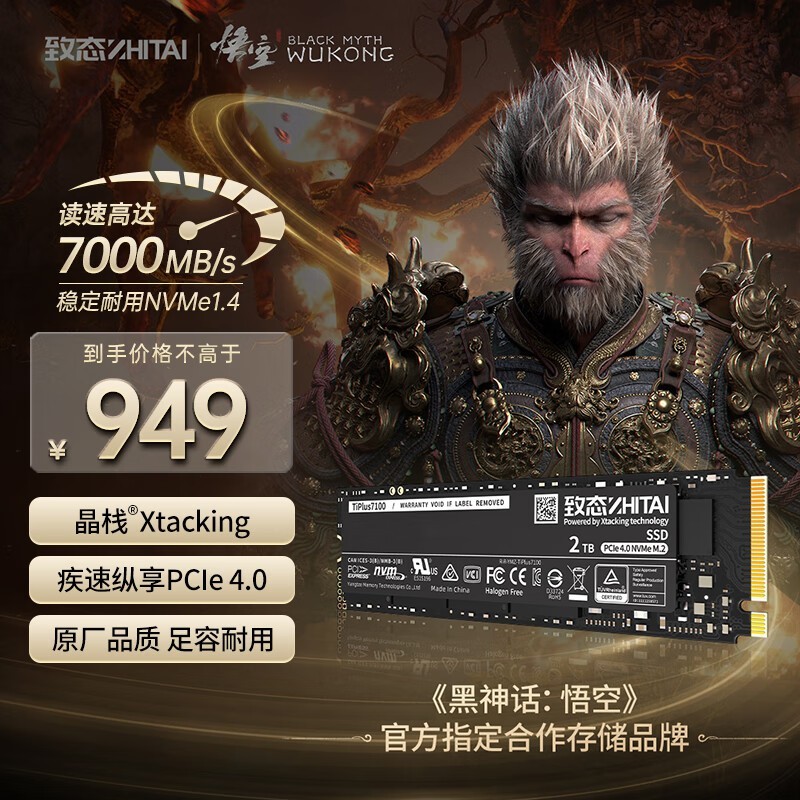 致态 TiPlus7100 长江存储 2TB SSD固态硬盘 NVMe M.2接口《黑神话:悟空》官方合作品牌