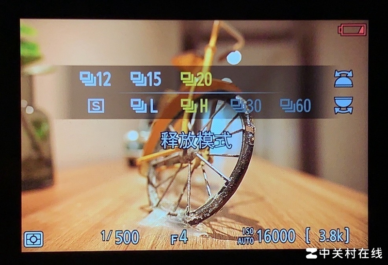 照片格式设置为无压缩的RAW,启用20张/秒的高速连拍。但实际上,前20张照片是存储在机身的高速缓存中,从第21张开始才正式写入存储卡。当连拍结束后,再将机身中的20张照片回写到存储卡中,因此存储卡的写入速度也就制约着连拍的后续效率。