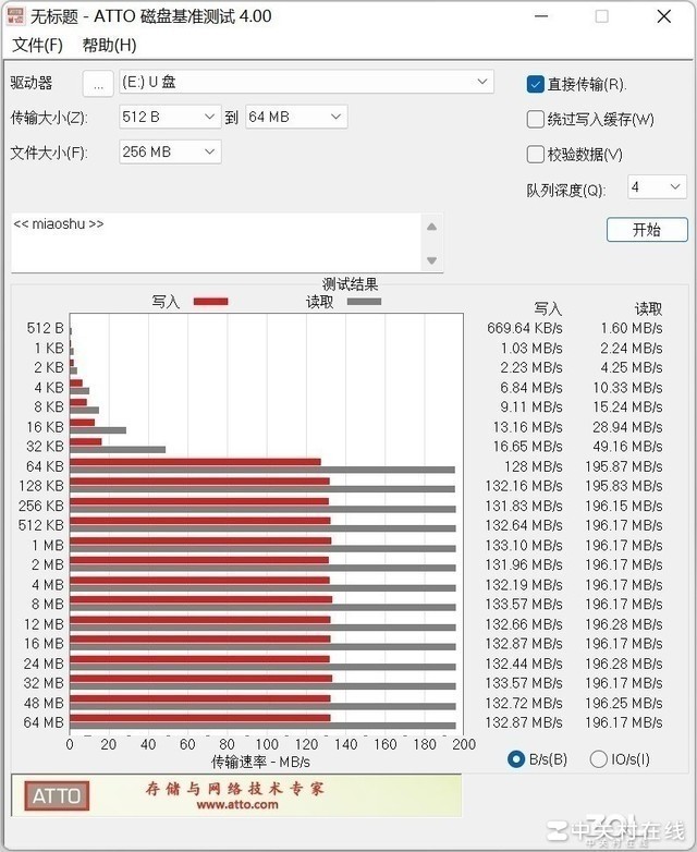 无论是单张照片拍摄,还是高速连拍,在存储卡中表现为单个文件的生成,而文件的大小也影响存取的效率。移动存储测试软件ATTO Benchmark测试结果显示,三星PRO Ultimate SD卡128GB在64KB大小以上的文件读写时速度开始稳定,128KB以后基本保持在195MB/s和130MB/s以上,而现在的相机即使采用最低画质的S档,照片大小也超过了128KB,所以开机即可保持最佳的读写效能。