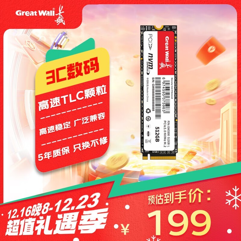 长城 GW3300 SSD固态硬盘GW3300 M.2接口(NVMe协议)PCIe 3.0x4 台式笔记本固态硬盘 GW3300-512GB