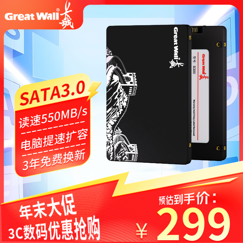 长城 S300系列固态硬盘,拥有高达560MB/s的连续读取速度和480MB/s的连续写入速度。长城 S300采用的3D NAND闪存技术,使其在数据传输速度和使用寿命上都有很大的提升。同时,长城 S300硬盘采用的MLC层与TLC层相结合的设计,有效的保障了硬盘的数据安全,并且降低了功耗,提高了电源的使用效率。最重要的是,长城 S300固态硬盘采用了智能控制芯片,使其在保护数据安全的同时还能提高系统响应速度。现在购买可享受更多优惠价格!
