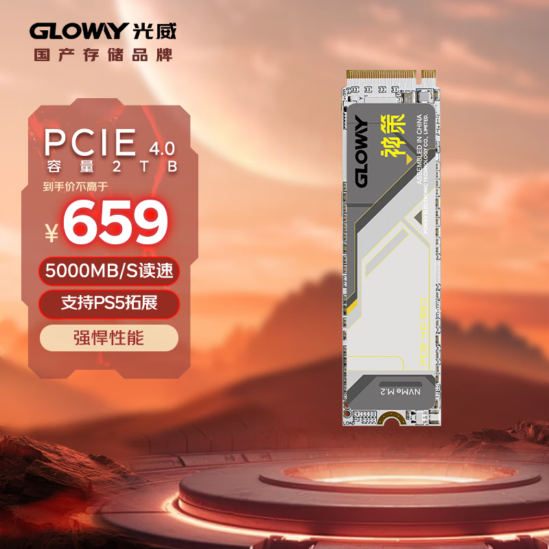 光威 神策 M.2接口(NVMe协议) PCIe 4.0x4 神策系列 黑神话装机升级版固态硬盘,让你的电脑飞速运行。光威 神策独特的颗粒技术,让其在速度和稳定性上都表现出色。【安装简单 读写速度快】光威 神策M.2接口设计,安装简单方便。PCIe 4.0x4接口让其拥有更快的数据传输速度,大大提升了电脑的整体性能。【稳定可靠 经久耐用】光威 神策采用3D NAND芯片和独立缓存设计,使其具有更强的抗冲击性和抗震动性,提高了硬盘的使用寿命。现在只需645元即可入手,喜欢的朋友不要错过这次优惠!
