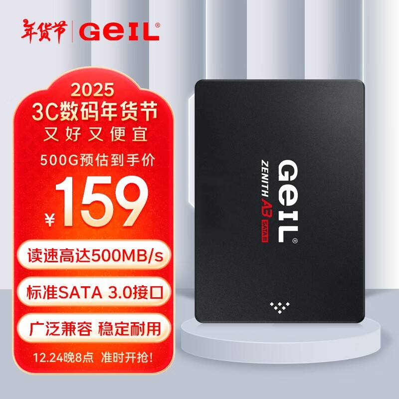 金邦 A3系列固态硬盘仅售159元,原价179元。SATA3.0接口,传输速度高达6Gbps。金邦 A3搭载3D NAND闪存颗粒和铝制散热片,性能更稳定可靠。活动期间购买还有更多优惠,价格亲民实惠,绝对值得一试!