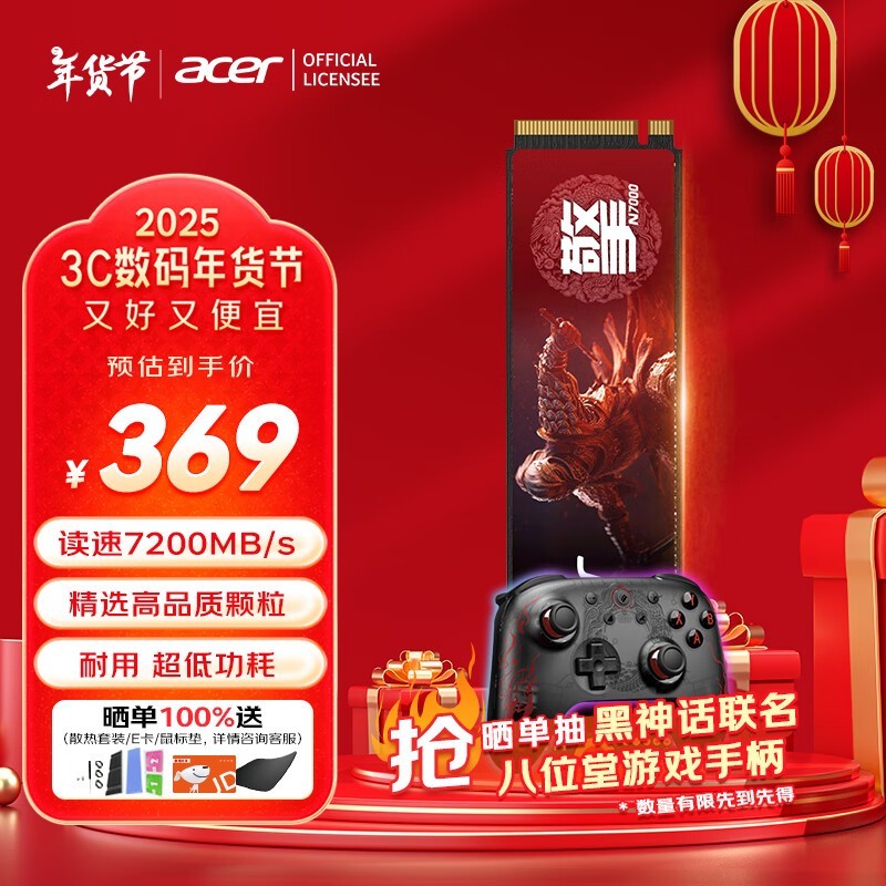 【新品来袭】宏碁 N7000 NVMe M.2 固态硬盘 1TB(PCI-E4.0)-346元