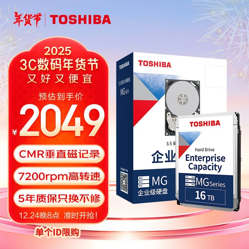 东芝 MG09ACA16TE机械硬盘,容量高达16TB,7200转的高速读取能力,垂直式CMR记录技术保证了数据的安全可靠。东芝 MG09ACA16TE采用512MB的大缓存,使得电脑在运行过程中更加流畅快速。同时,东芝 MG09ACA16TE还支持SATA接口,方便用户进行安装和使用。目前京东上的价格为1989元,比原价便宜60元,是一款非常值得购买的商品。