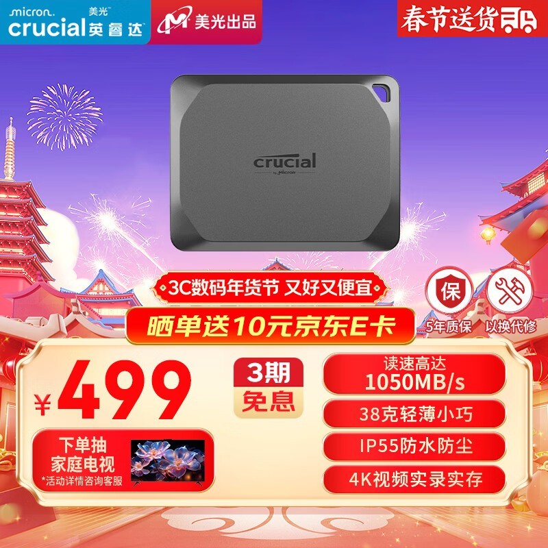 英睿达 X9 Pro 美光 1TB 移动固态硬盘(PSSD) 传输速度1050MB/s 手机直连SSD IP55等级三防