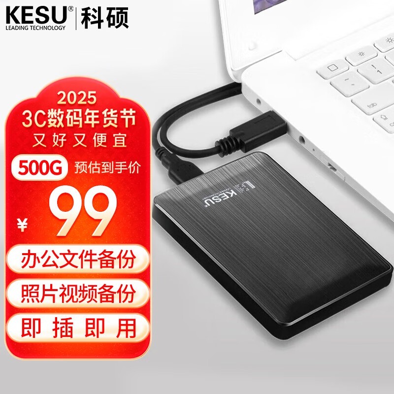 这款科硕 K1移动硬盘的优惠活动非常给力,只需要花费94元就可以带回家一款容量高达500GB的高速传输移动硬盘,这样的好货不容错过!如果你正在寻找一款速度快、安全可靠且外观精致的移动硬盘,那么科硕KESU移动硬盘就是你的首选。赶快行动起来吧!