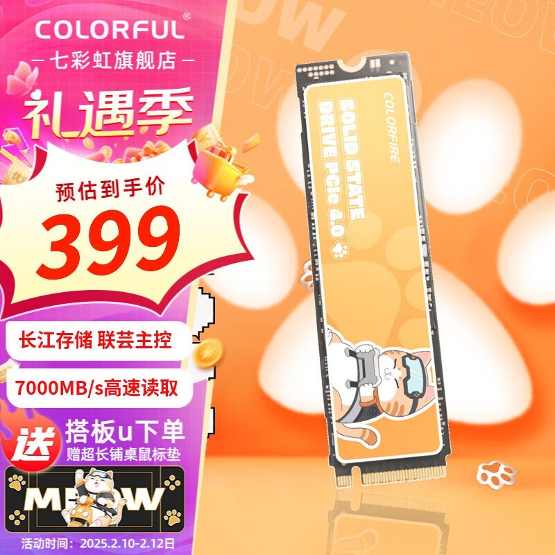 七彩虹 CN700 PCIe4.0 M.2 NVMe 1T/2T/4T固态硬盘 台式笔记本SSD 橘猫定制款 长江存储颗粒 橘影橙 1TB【长江存储】 旗舰款-PCIe4.