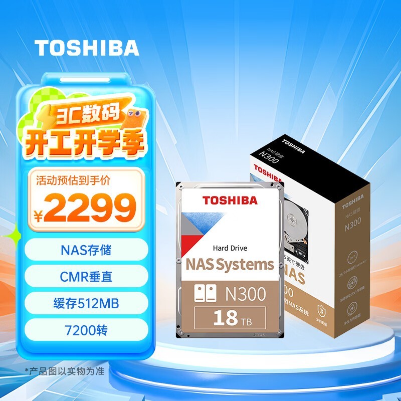 欢迎光临我们的优惠活动,东芝 N300 18TB NAS网络存储机械硬盘私有云家庭文件存储7200转 512MB SATA接口N300系列(HDDG51J)。东芝 N300是我们家的新品上市,拥有强大的存储容量和高速的读写速度,非常适合家庭或个人使用。现在购买还有更多优惠,让你以更实惠的价格拥有它。