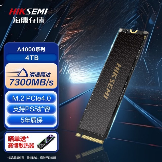 海康威视 A4000 4TB SSD固态硬盘系列 M.2接口(NVMe协议PCIe 4.0 x4) 读速7300MB/s
