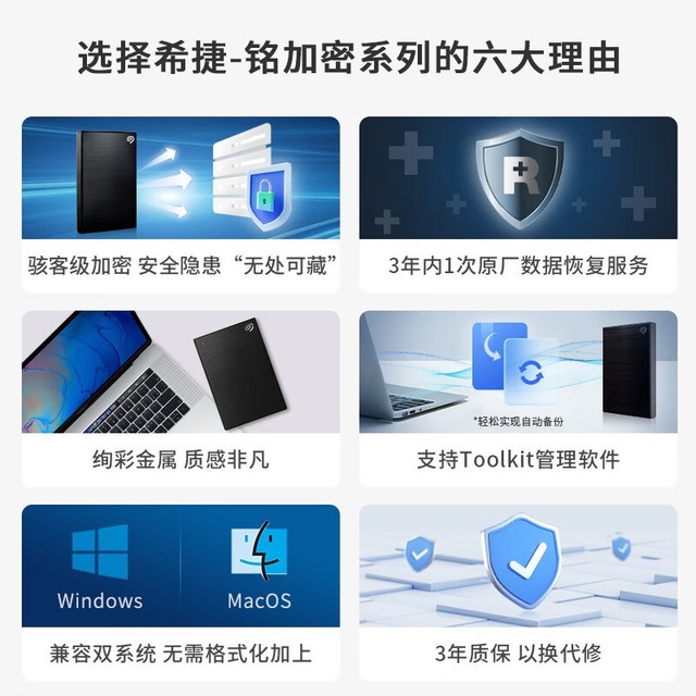 此外,值得一提的是,希捷铭支持自提功能,还可以在断电时备份数据。同时支持多操作系统兼容性,具有抗冲击性强、抗震能力优异的特点。